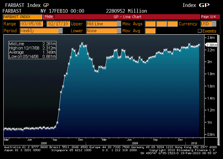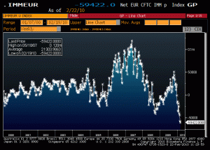 Reading this article in the WSJ “Hedge Funds Try ‘Career Trade’ Against Euro“, it would seem that there is an increasing amount of investors, especially hedge funds, looking for the EUR to fall to parity against the USD. It is hard to believe that only a few months ago it looked as though the EUR was heading back towards its previous highs around 1.60 hit in April 2008.