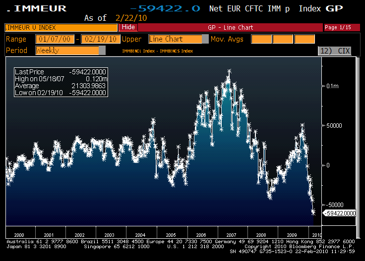 The picture towards the end of 2009 reversed as initially investors covered short USD positions and then bought USDs on rising risk aversion and growing problems in Greece. The trend looks well set now and a move even lower beckons for EUR/USD.
