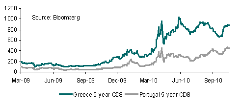 Importantly the financing rate for the package is lower than feared (speculation centered on a rate of 6.7%) but still relatively high at 5.8%. Moreover, no haircuts are required for holders of senior debt of Irish banks and Germany’s call for bondholders to bear the brunt of losses in future crises was watered down. The package will be composed of EUR 45 bn from European governments, EUR 22.5 bn from the IMF and EUR 17.5 bn from Ireland’s cash reserve and national pension fund.