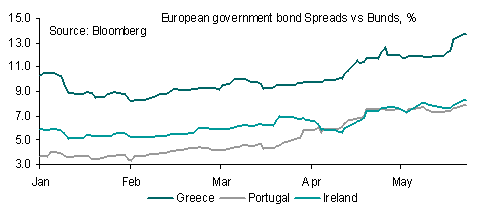 Greece’s Prime Minister Papandreou’s attempt to push through austerity measures in the Greek parliament yesterday by announcing accelerated asset sale plan and EUR 6 billion in budget cuts have done little to turn market sentiment despite the fact that at the least it shows a willingness to stick to the plan in the face of growing domestic resistance.
