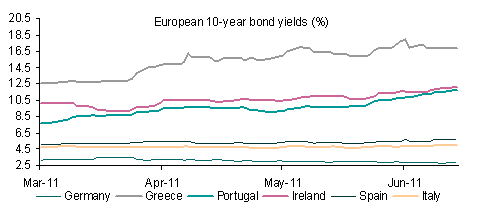 Risk aversion is on the rise as uncertainties about Greece and worries about weaker economic data weigh on sentiment. A number of key events rather than data will be the main drivers this week. First and foremost amongst these is the vote in the Greek parliament on the country’s budget reform plan, which if passed will pave the way for the way for a disbursement of EUR 12 billion from the European Union / IMF and a new bailout package.