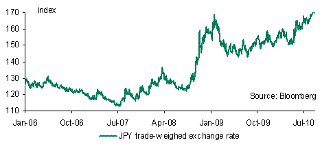 On Thursday the US July trade deficit is set to reveal some narrowing and as usual the deficit with China will be of interest given the renewed tensions over FX policy. FX tension seems to be intensifying once again due to the relatively slow pace of CNY appreciation since the June de-pegging as well as political posturing ahead of November US mid-term elections. A deterioration in US trade data, a factor that largely contributed to the soft Q2 GDP outcome in contrast to a strengthening in China’s trade surplus will have added fuel to the fire.