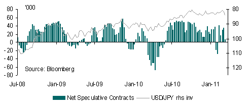 Perhaps some reversal of the optimism towards US recovery prospects give USD bulls some cause for concern, but pressure is likely to prove temporary, especially given that the US economy is still on course to outperform many other major economies. Over the short-term, especially ahead of the US jobs report markets are set to remain cautious with range trading likely to dominate in the week ahead, suggesting that EUR/USD is unlikely to breach the key level of 1.2500. GBP performance has been robust but even this currency is likely to make much headway above GBP/USD 1.5000, where there are likely to be plenty of sellers.